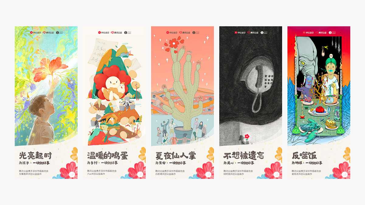 今年,99公益日主會場將以線上畫展形式呈現,圍繞“為孩子、為鄉村、為生命、為地球、為關心”五大主題,通過各式各樣的畫作表達公益主張,讓大家更直觀的了解公益、參與公益、傳播公益。