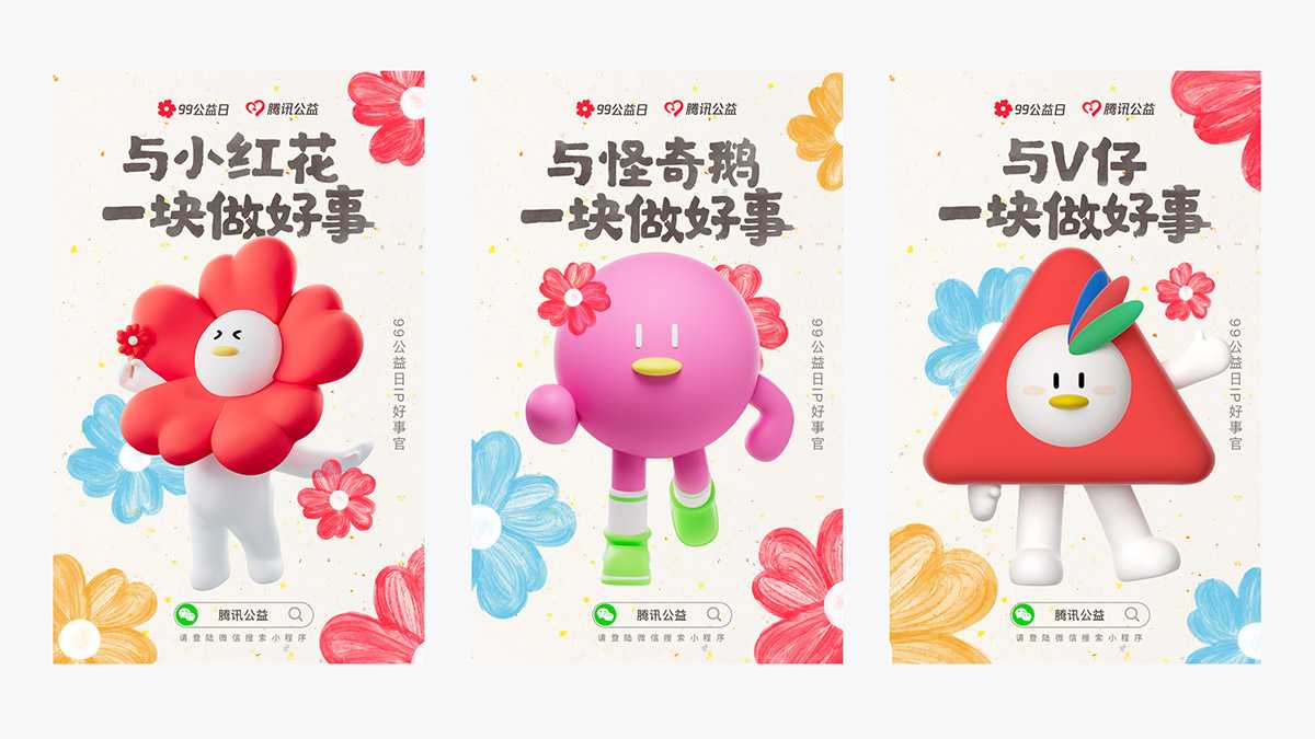 99公益日主視覺海報、線上與線下物料等,全套品牌參考素材和使用規范已經上線。(詳情見騰訊公益設計網站:designforgood.qq.com)