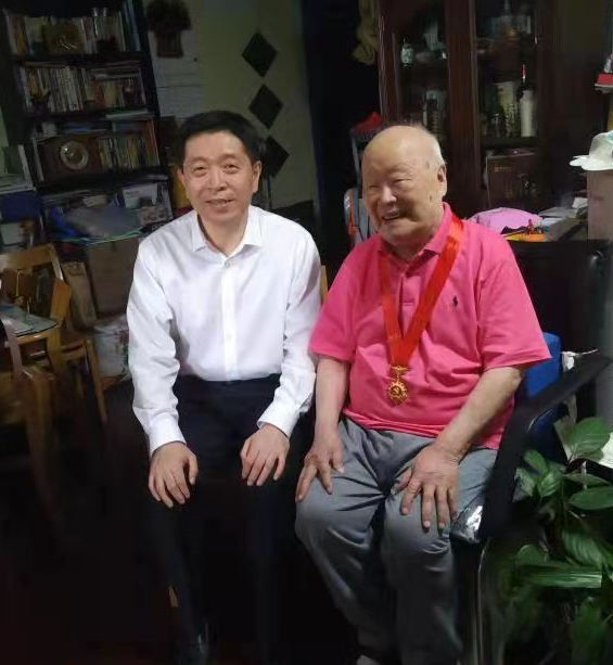 (俞建勇慰問(wèn)離休干部周啟澄、中國(guó)工程院院士周勤之并為其頒發(fā)紀(jì)念章)
